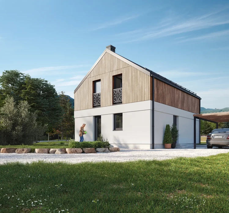 Jedno zadaszone miejsce postojowe w cenie domu.