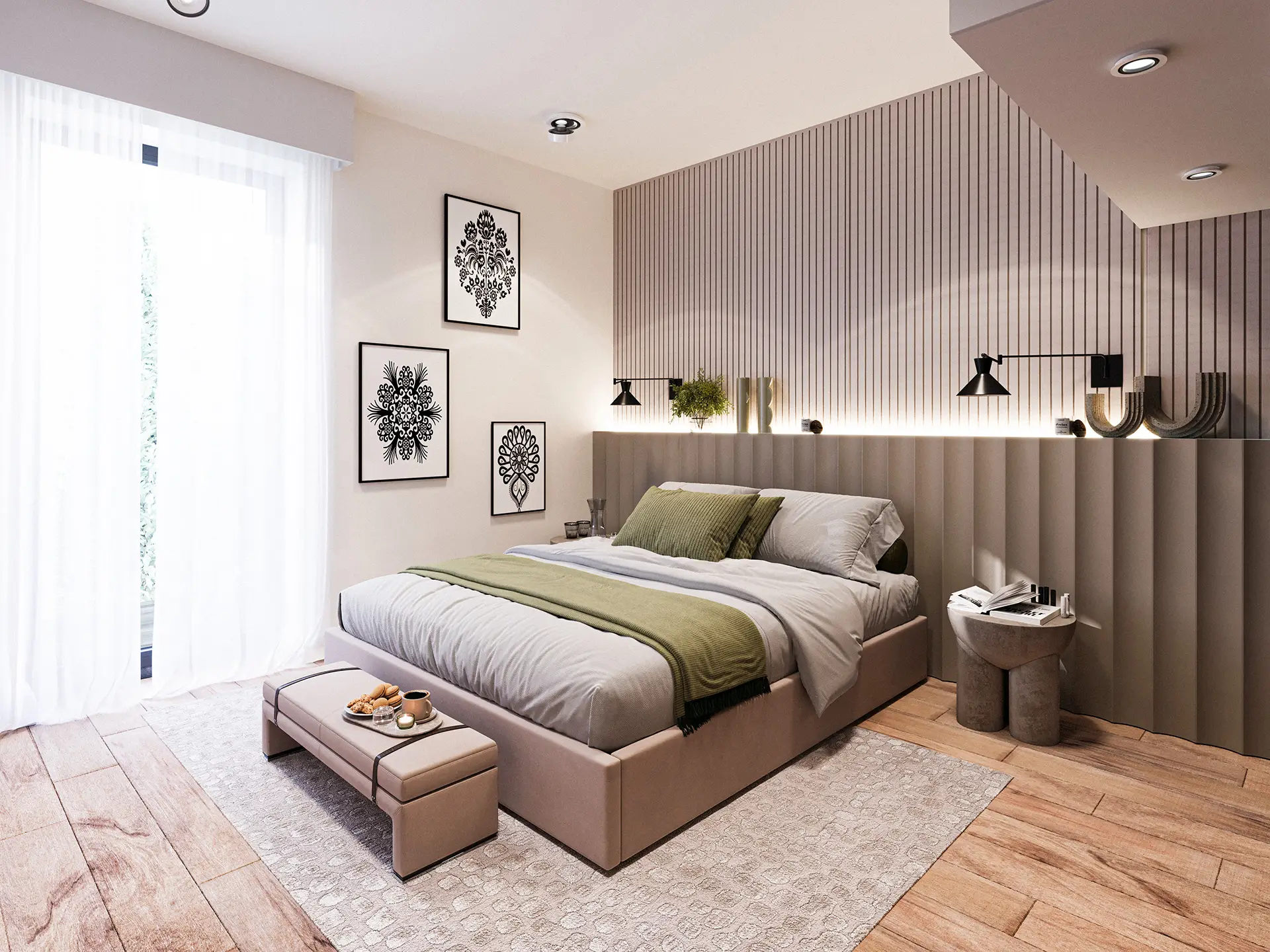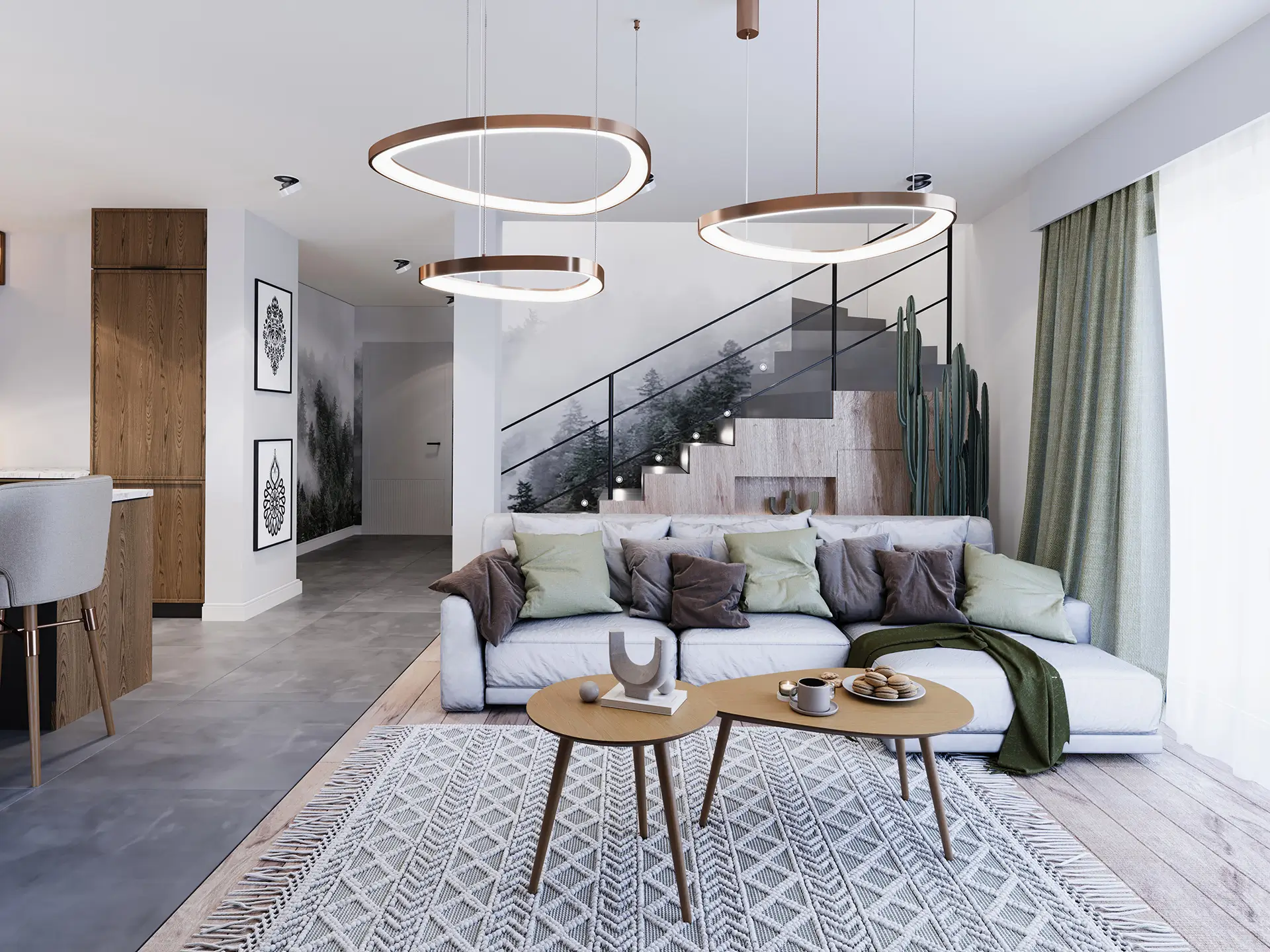 Każdy z budynków to przemyślany projekt, w którym dopracowano każdy detal – od ergonomicznego i praktycznego układu wnętrz, po wysokiej klasy materiały wykończeniowe wzbogacone o nowoczesne technologie. Domy oferują pięć przestronnych pokoi, w tym jasny salon z aneksem kuchennym, cztery pokoje do własnej aranżacji, dwie komfortowe łazienki, garderobę oraz pomieszczenie techniczne.
